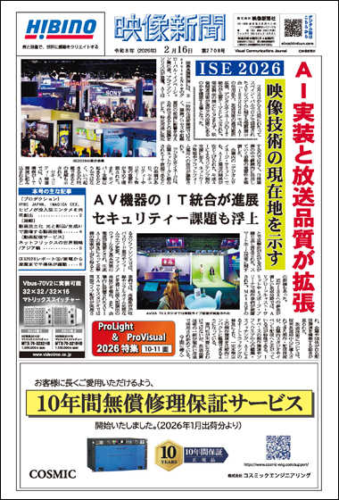 映像新聞は、放送やブロードバンド、デジタルコンテンツプロダクション、映像制作者など映像業界へ向け、ビジネスとテクノロジーの両視点で情報を発信しているビジネスを熱くする専門紙です。さらに詳しい記事・画像は本紙でご覧いただけます